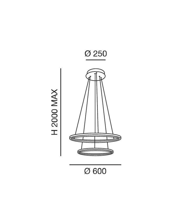 Un altro punto di forza di Fabas Luce Giotto Ø60+40 cm è la possibilità di regolare l’altezza dei cavi, offrendo massima flessibilità d’installazione.