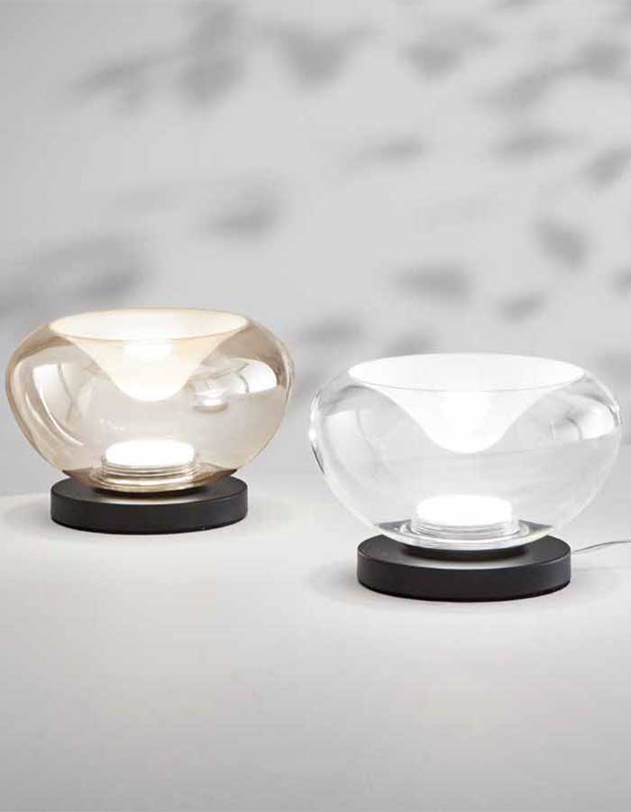 Puoi scegliere tra la versione in vetro trasparente, che offre una luminosità cristallina, o quella in vetro color cognac, che aggiunge un calore ambrato e un tocco sofisticato all’ambiente.
