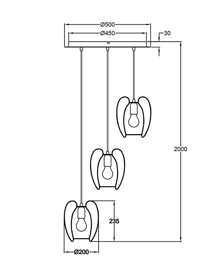 Utilizza tre lampadine con attacco E27 (non fornite), consentendo di scegliere la potenza luminosa e la temperatura di colore più adatte al tuo ambiente.