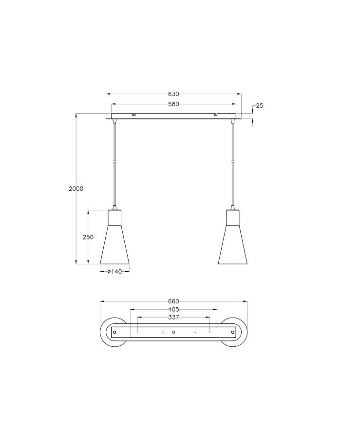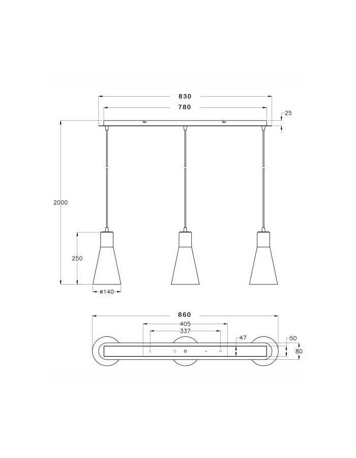 Il cavo di sospensione è regolabile in altezza fino a 200 cm grazie a un pratico meccanismo a frizione installato nella base a soffitto.