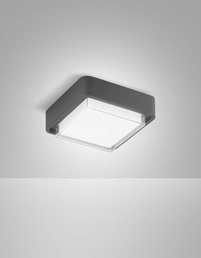 Illumina i tuoi spazi esterni o ambienti interni che richiedono protezione dall’umidità con l’eleganza discreta e l’efficienza della Fabas Luce Duke Plafoniera Led.