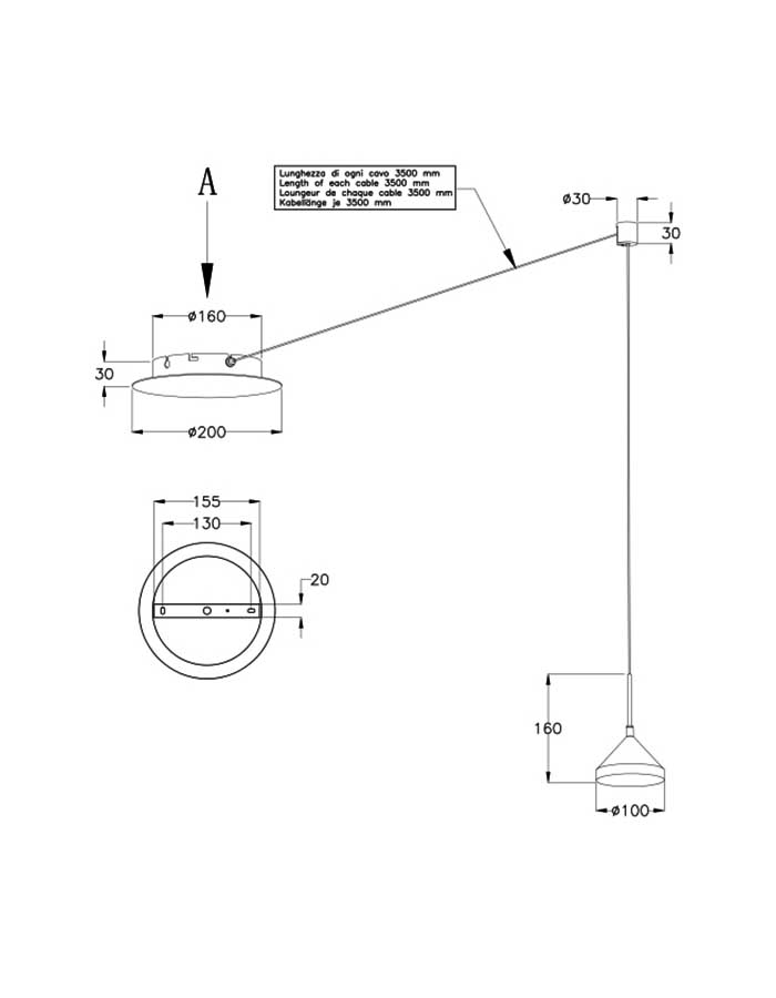 Il design intelligente permette una regolazione dell’altezza del cavo, offrendo la massima flessibilità per adattare la lampada a diverse altezze di soffitto o per posizionarla idealmente sopra un tavolo da pranzo, un’isola in cucina, una scrivania in ufficio o un bancone.