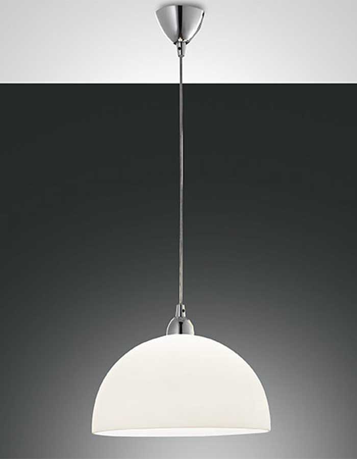 Il suo elemento distintivo è il diffusore a coppa in vetro centrifugato, che le conferisce una linea morbida e una diffusione della luce estremamente gradevole.