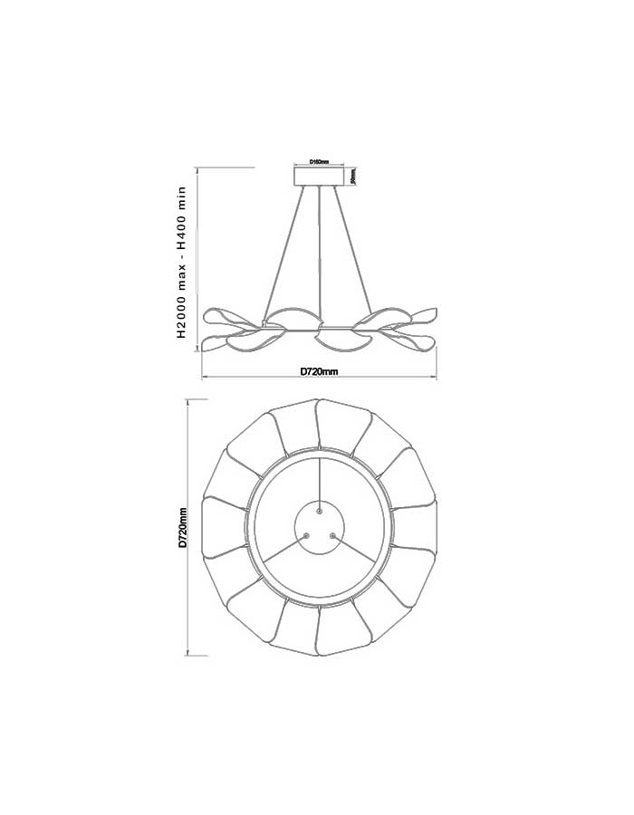 La struttura è composta da anelli o elementi geometrici leggeri, sospesi tramite cavi sottili e regolabili, che conferiscono all’intera lampada un’impressione di leggerezza e movimento.