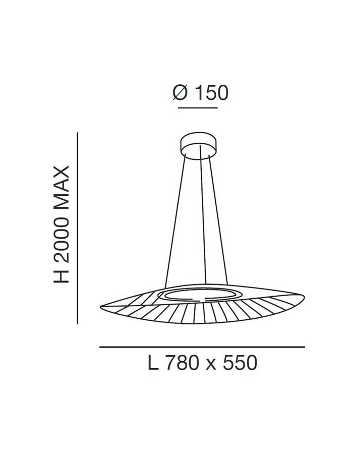Grazie alla sua dimensione generosa di 78×55 cm, questa sospensione si presta perfettamente a illuminare aree di medie e grandi dimensioni, come soggiorni, cucine open space, uffici o sale riunioni, offrendo una luce uniforme e confortevole.