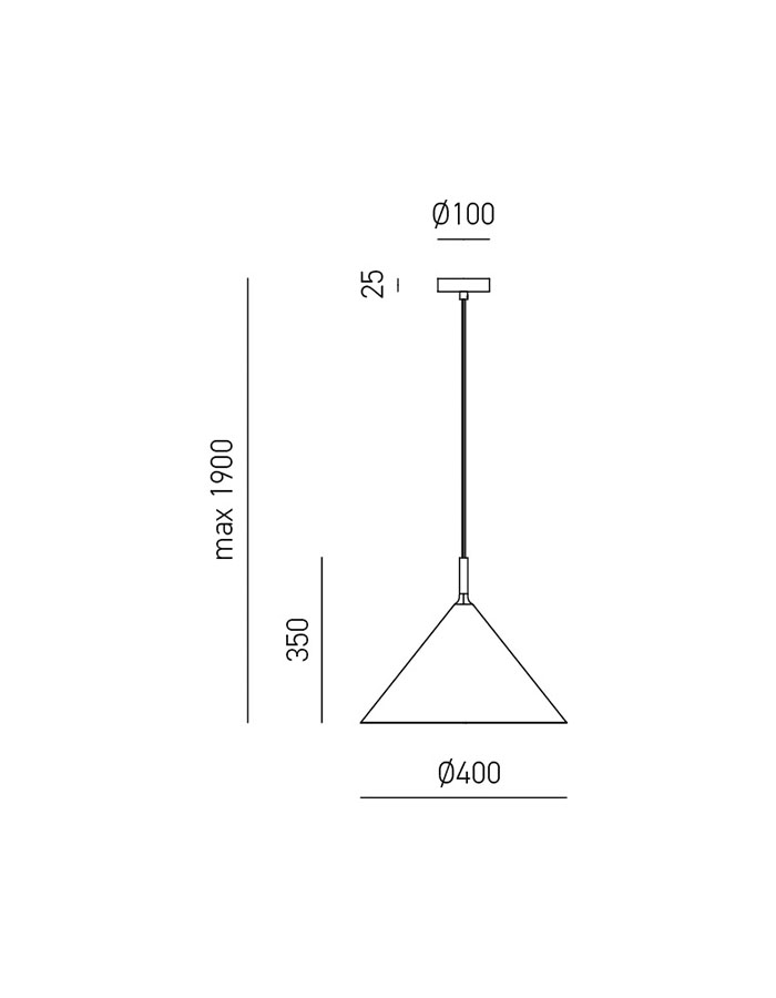 Il corpo della lampada è completato da una struttura metallica semplice e discreta, con cavo regolabile in altezza che permette di personalizzare l’installazione secondo le esigenze dello spazio.