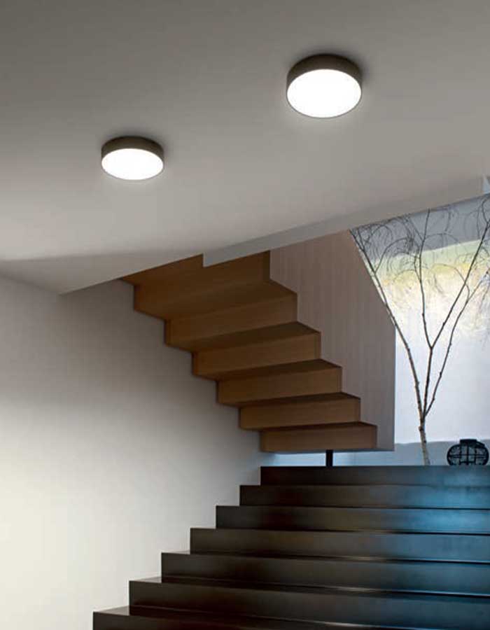 Il suo design discreto e la possibilità di installarla in serie la rendono la scelta ideale anche per l’illuminazione di corridoi e passaggi, dove una fila di queste plafoniere può creare un effetto visivo elegante e una luce ben distribuita.