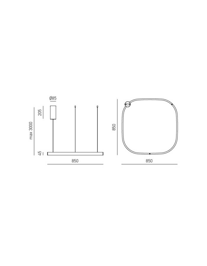 La sospensione è regolabile in altezza fino a un massimo di 300 cm, permettendo di adattarla a soffitti di diverse altezze.