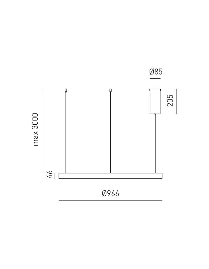 La sospensione è regolabile in altezza fino a un massimo di 300 cm, permettendo di adattarla a soffitti di diverse altezze.
