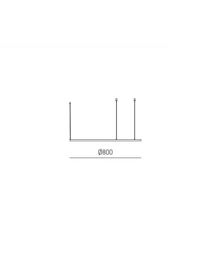 Si distingue per il suo design moderno e minimalista, caratterizzato da un anello luminoso di generose dimensioni (Ø80cm) sospeso.