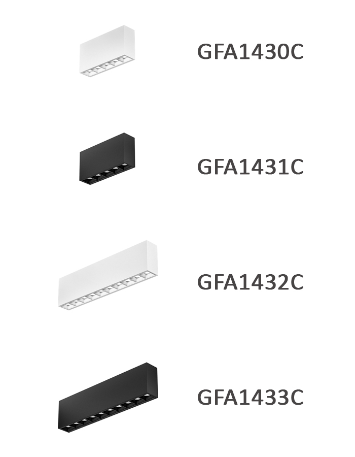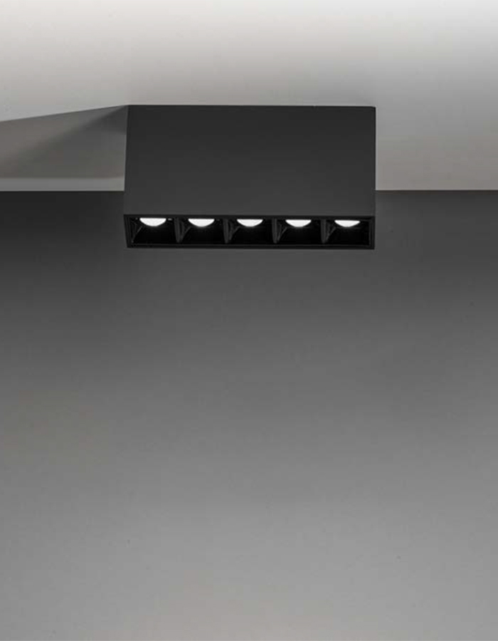 Si distingue per il suo design minimalista e quadrato, con dimensioni compatte che le permettono di integrarsi perfettamente in qualsiasi tipo di soffitto.