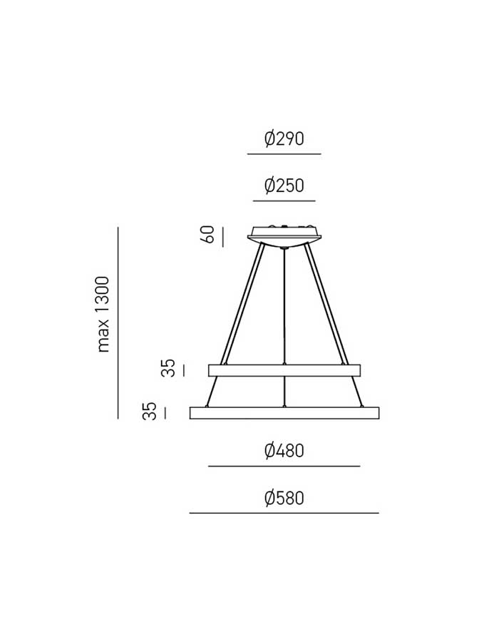 Si distingue per il suo design moderno e minimalista, caratterizzato da due anelli luminosi perfetti sospesi in modo armonioso.