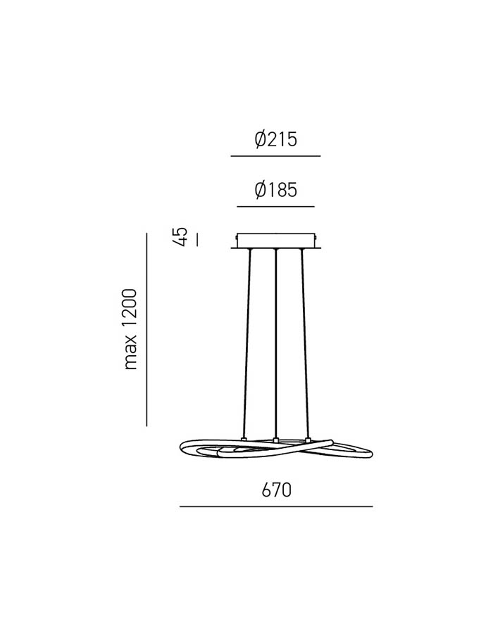 Il rosone da soffitto, discreto e coordinato, completa l’estetica raffinata dell’insieme, permettendo una sospensione regolabile in altezza per adattarsi a diverse esigenze di installazione.