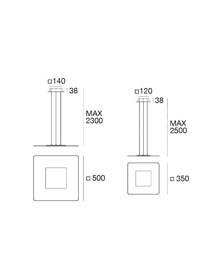 L’elemento distintivo di questa sospensione è la forma geometrica da 50×50 cm, che dona equilibrio e simmetria allo spazio.