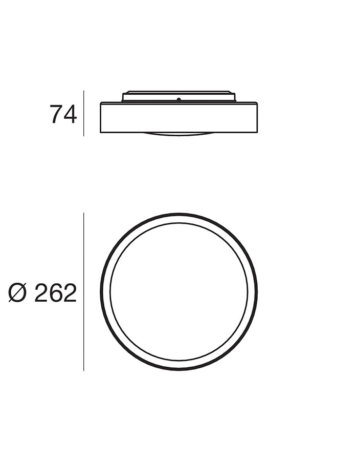 Le dimensioni compatte (Ø26,2 cm x H7,4 cm) la rendono ideale per spazi di varie dimensioni, mentre la possibilità di installazione a soffitto o a parete offre flessibilità nell’applicazione.