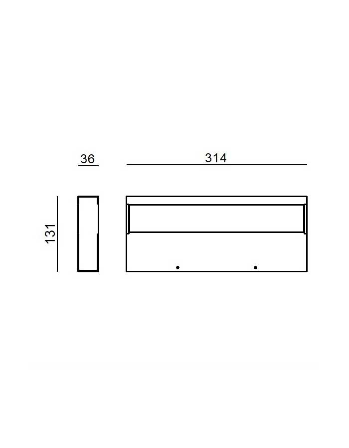 La struttura è realizzata in alluminio verniciato con una forma rettangolare e compatta che la rende discreta ma al tempo stesso visivamente interessante.