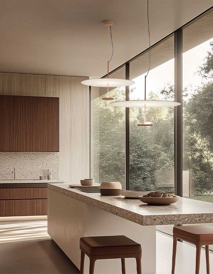 Il design a bi-emissione (70% verso il basso, 30% verso l’alto) crea un’illuminazione bilanciata e confortevole.