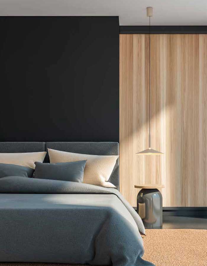 Il design pulito e le finiture disponibili – Bianco, Nero, Caffè, Grigio o Verde – consentono di abbinare la sospensione a diversi stili di arredamento, dal minimalista al più ricercato.