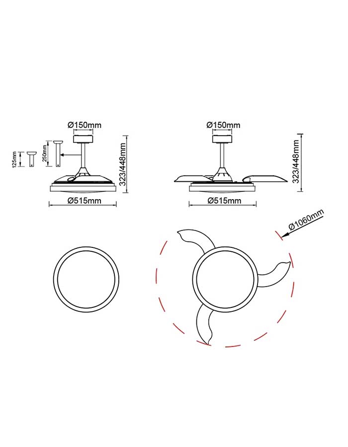 Con un diametro di 108 cm in apertura, è perfetto per stanze da letto, camerette per bambini o studi dove un ventilatore tradizionale risulterebbe troppo ingombrante.