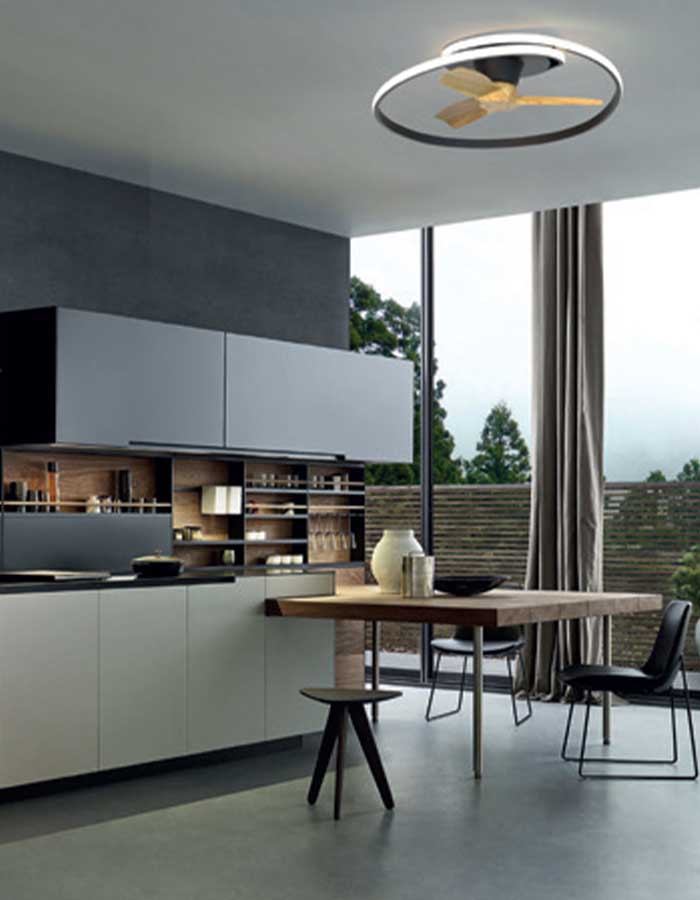 Mantra Ocean Ventilatore Led con design futuristico e decorativo che con la sua dimensione ridotta non ostacola la visione della stanza quando installata.