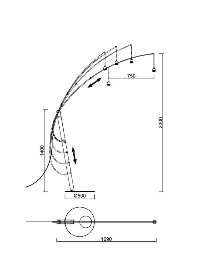 Il braccio della piantana è estensibile regolandolo con un margine di 75 cm.