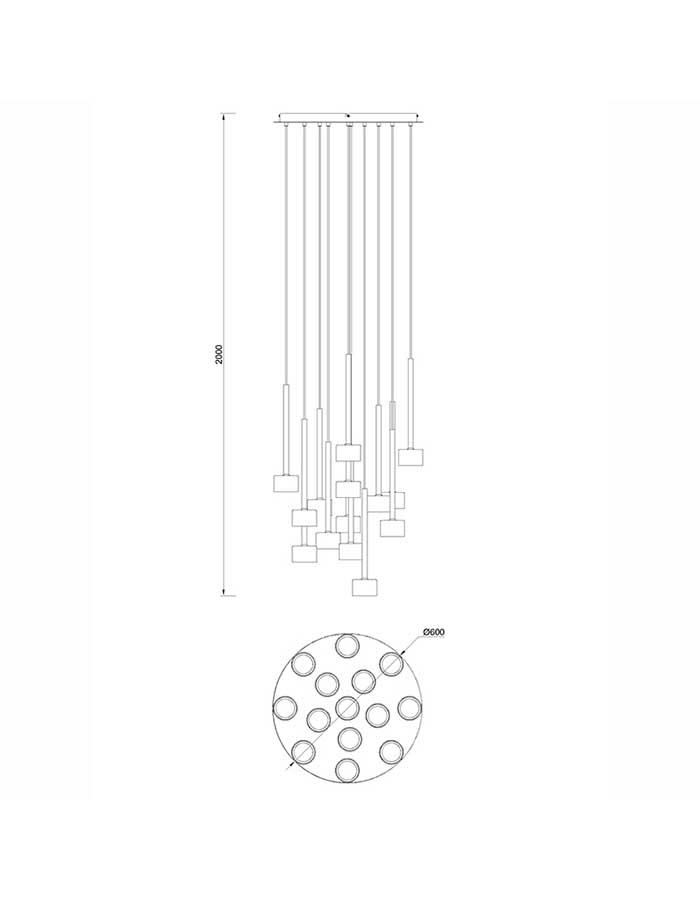 La sospensione è offerta in due varianti, con 8 o 14 luci, ogni punto luce richiede una lampadina GX53 (non inclusa).