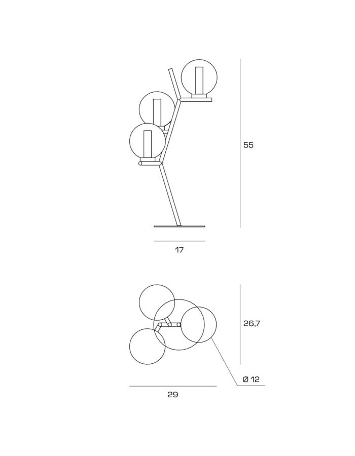 Il suo design unico, con i tre diffusori disposti su bracci a diverse altezze, si adatta perfettamente a diversi contesti di arredamento, aggiungendo un tocco di eleganza e luminosità.