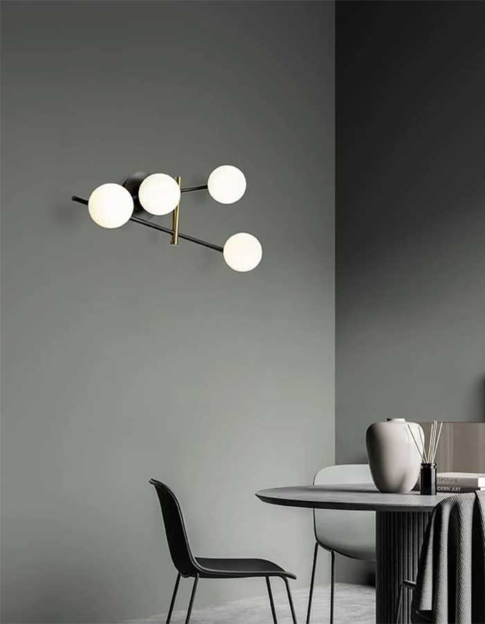 I diffusori in vetro garantiscono una luce morbida e diffusa, creando un’atmosfera accogliente e sofisticata.