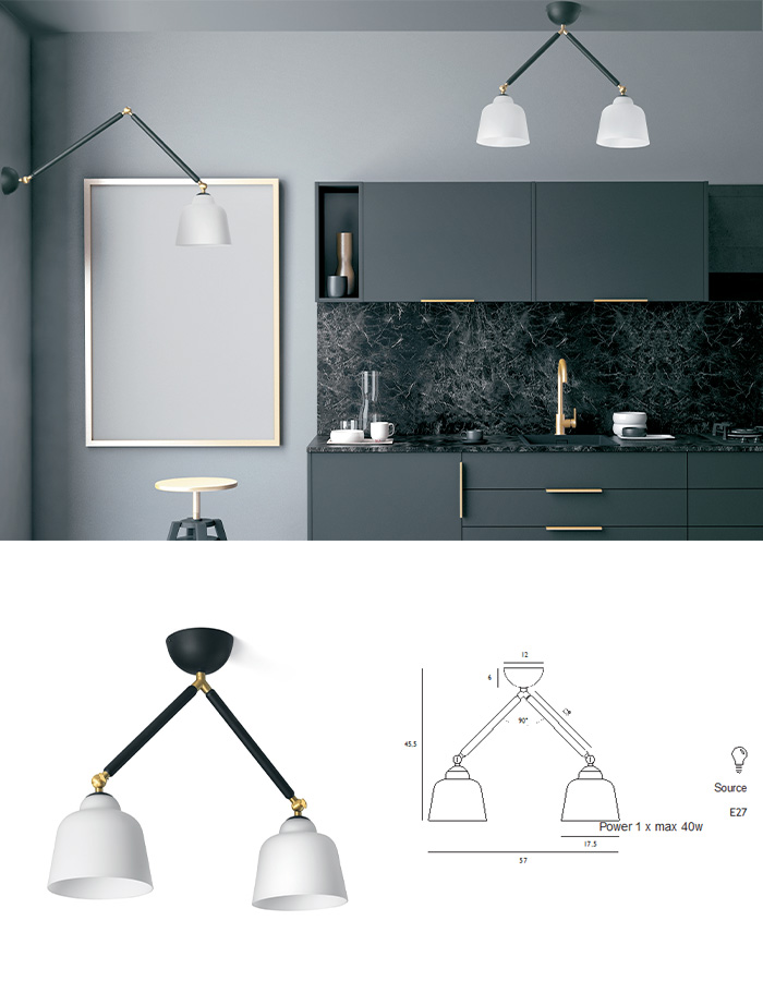 L’apparecchio monta due portalampade con attacco E27, offrendo la libertà di scegliere le lampadine desiderate (lampadine non incluse).