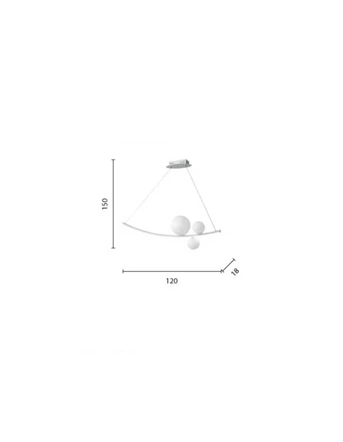 I tre diffusori sferici in vetro soffiato bianco, due posizionati sulla parte superiore e uno sulla parte inferiore, aggiungono un tocco di raffinatezza e garantiscono una diffusione uniforme della luce.