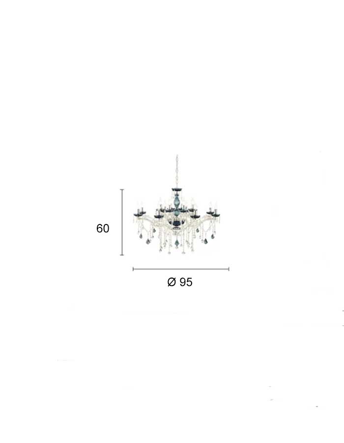 Questo lampadario è progettato per ospitare 16 lampadine con attacco E14 (non incluso), offrendoti la libertà di scegliere la potenza ed anche il tipo di luce (calda, neutra o fredda).