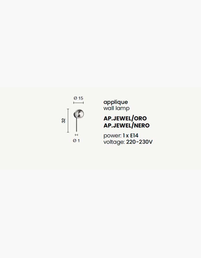 Il corpo è disponibile nelle finiture nero opaco e oro opaco, mentre il diffusore sferico (Ø 12 cm) in vetro satinato garantisce una luce morbida e non abbagliante.
