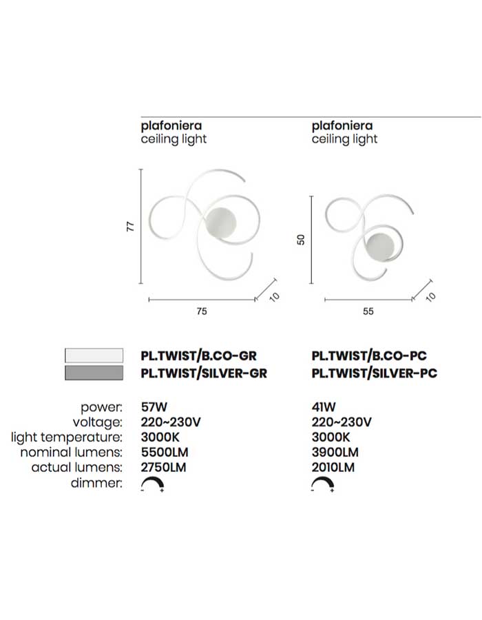 Ondaluce Twist Plafoniera Led unisce un’estetica raffinata a funzionalità avanzate.