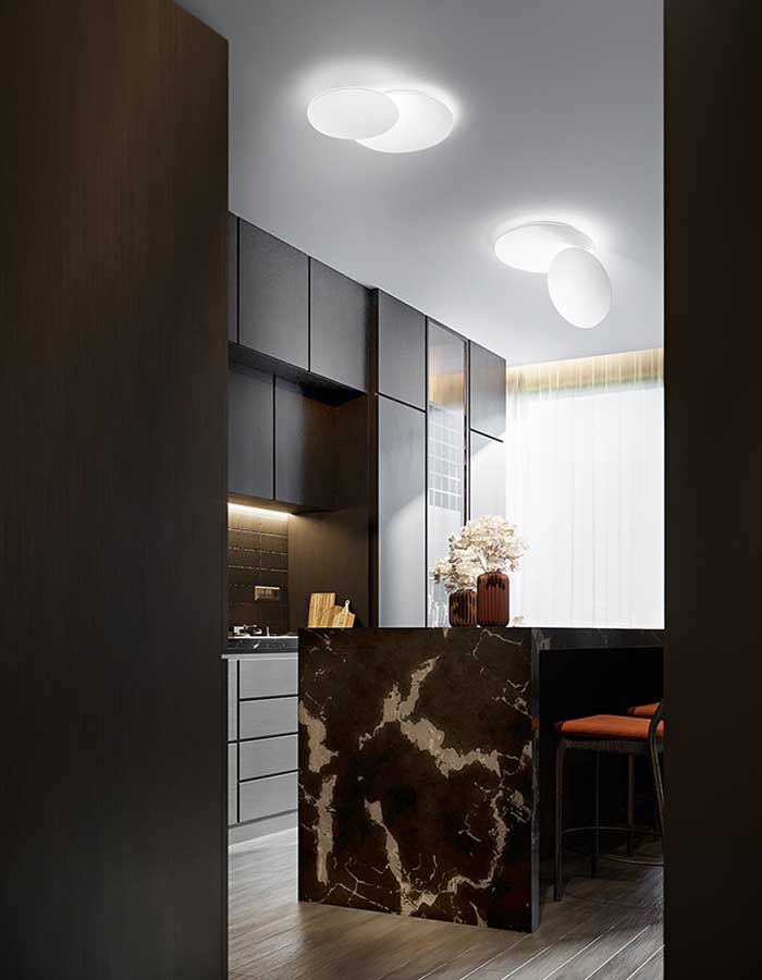 Lo spessore ridotto la rende ideale anche per stanze con soffitti non troppo alti, dove una sospensione sarebbe d’intralcio.