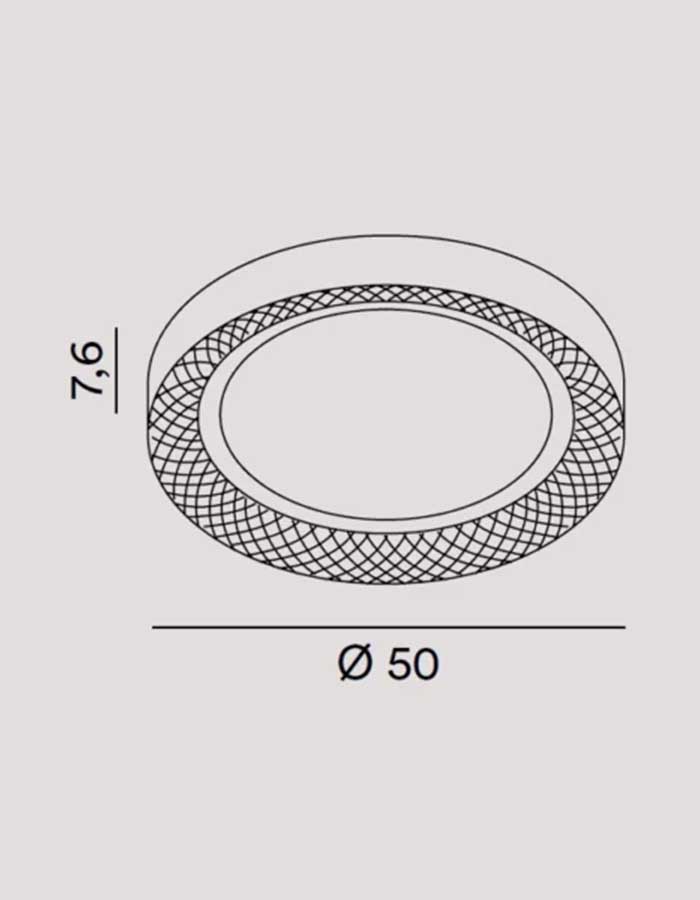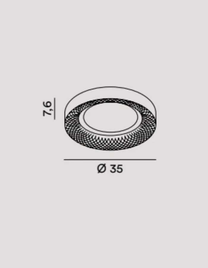 Perfetta per mimetizzarsi su soffitti chiari, rivelando la sua trama solo quando accesa, ed un richiamo al lusso contemporaneo, dove il riflesso dorato scalda istantaneamente l’ambiente circostante.
