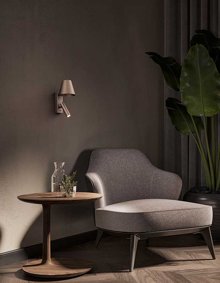 - Luce Riflessa: Orientando il faretto verso l’interno del paralume conico, si ottiene un’illuminazione più morbida e d’atmosfera.