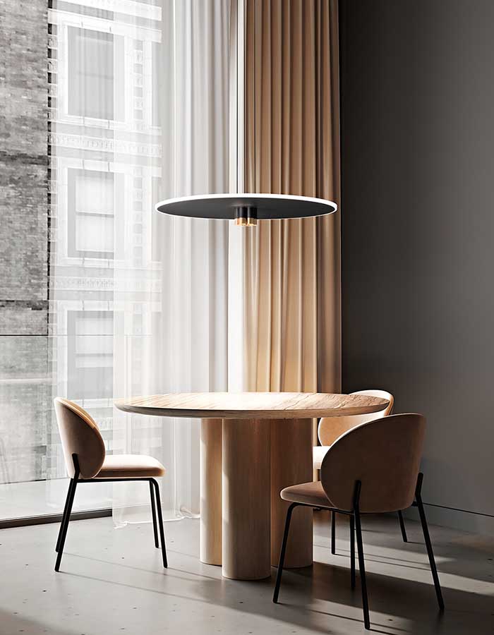 I cavi di sospensione sono regolabili, consentendo di posizionare la lampada all’altezza ottimale sopra il piano di lavoro o il tavolo.