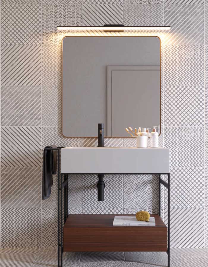 Adatta per illuminare uno specchio di un bagno con un grado di protezione IP44, che la rende resistente agli spruzzi d’acqua.