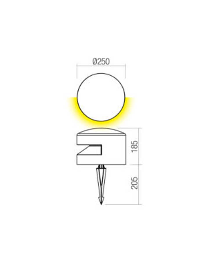 Realizzato in cemento, questo paletto presenta una testa illuminante caratterizzata da un vano ottico scavato nella struttura, che protegge la sorgente luminosa e ne direziona il flusso.