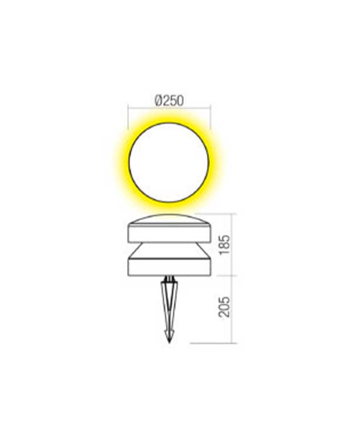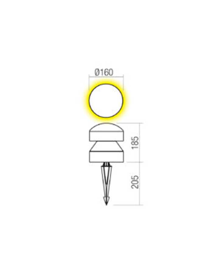 Realizzato in cemento, questo paletto presenta una testa illuminante caratterizzata da un vano ottico scavato nella struttura, che protegge la sorgente luminosa e ne direziona il flusso.