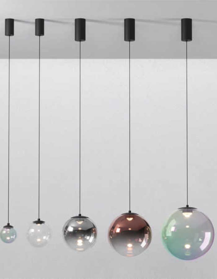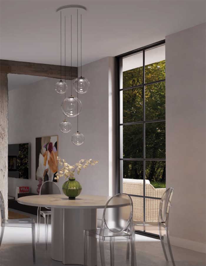 Il pendente include un cavo di sospensione regolabile, che permette di personalizzare l’altezza di installazione in base alle specifiche esigenze di arredamento.