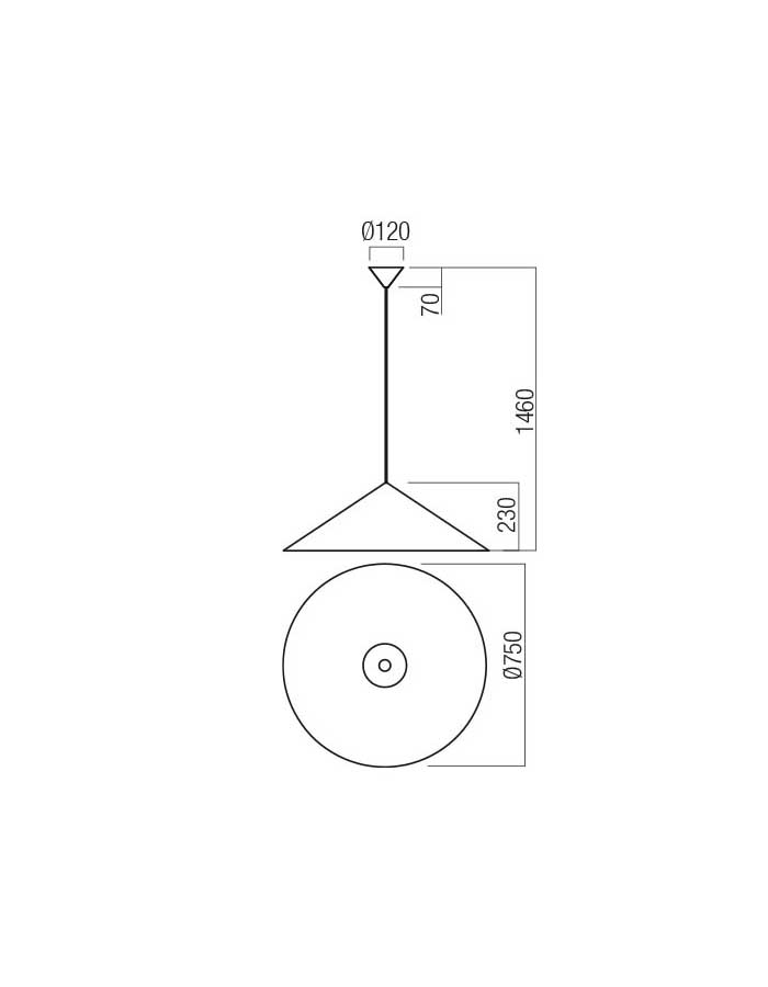 Il cavo di sospensione permette di posizionare la lampada alla distanza ideale dal piano di lavoro o dal tavolo, adattandosi perfettamente a soffitti di diverse altezze.
