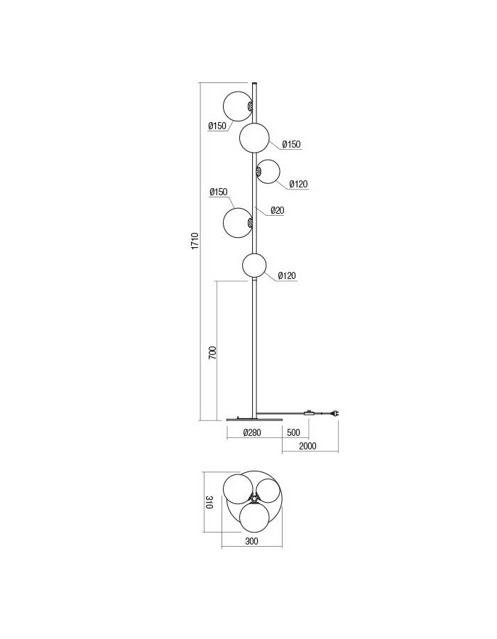 Sorgente luminosa con attacco per 5 lampadine G9 (non incluse).