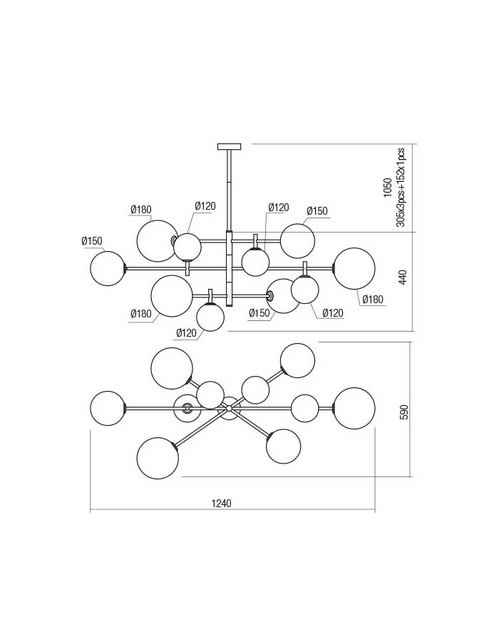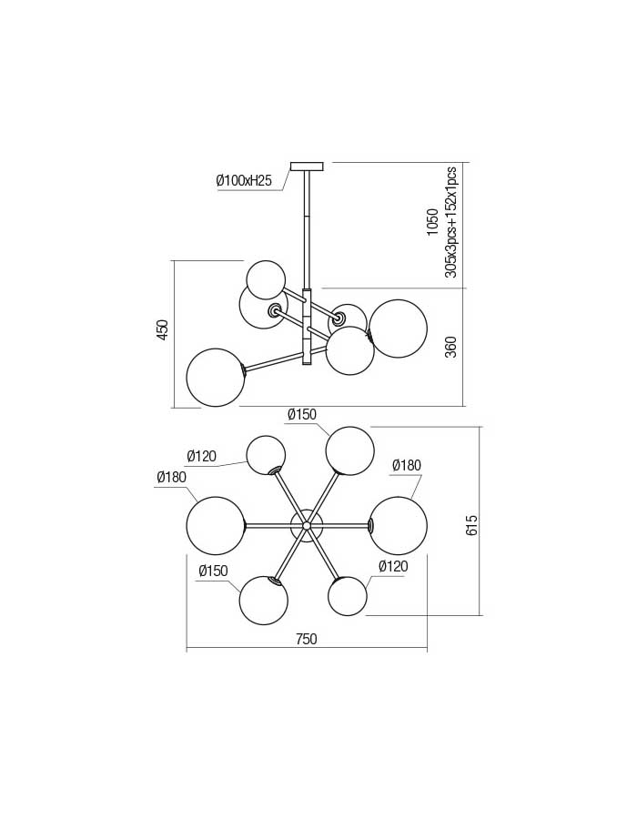 Sorgente luminosa con attacco per 6 o 10 lampadine G9 (non incluse).