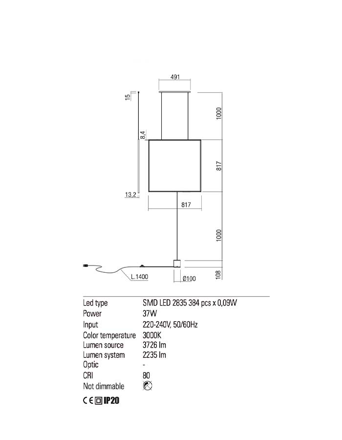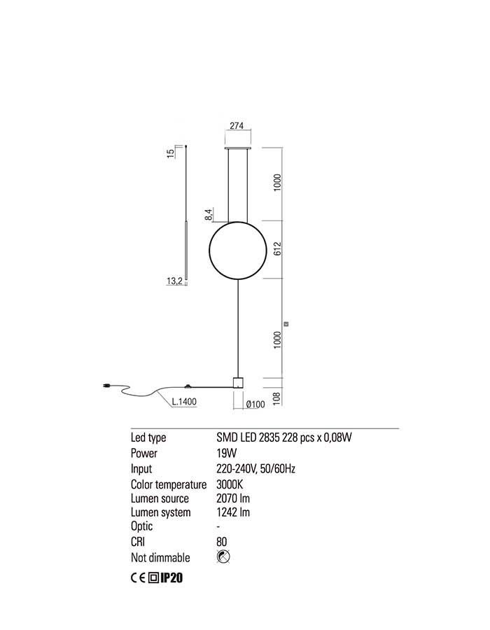 Viene installata fissando il cavo al soffitto e posizionando la base a terra, il che ne facilita l’installazione in diversi ambienti.