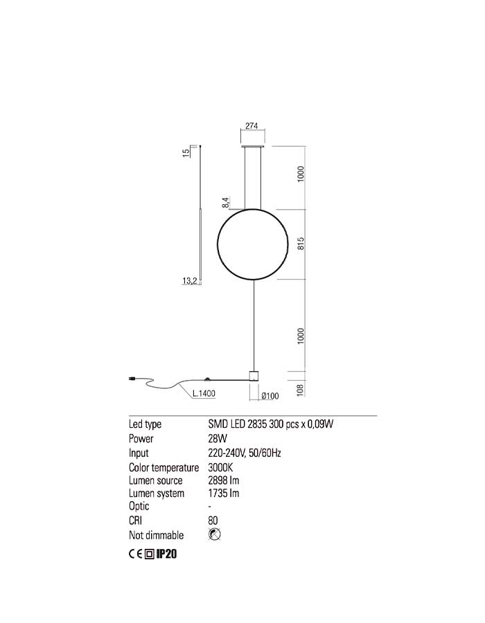La lampada Slick non è dimmerabile e ha una temperatura di colore fissa di 3000K (luce calda).