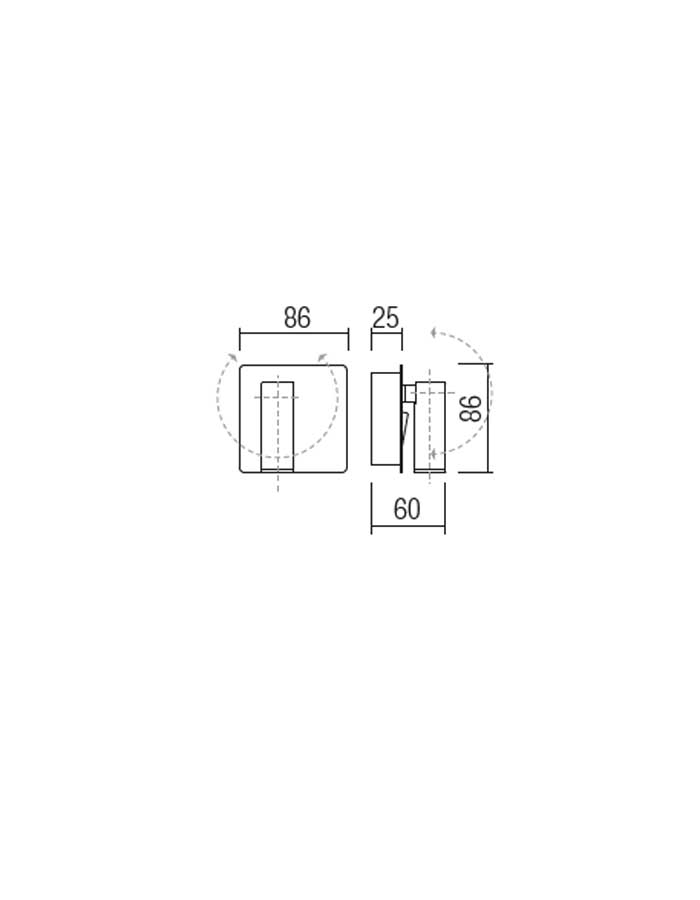 Il suo design geometrico e solido si combina con un’elevata funzionalità, data dalla possibilità di orientare il faretto.