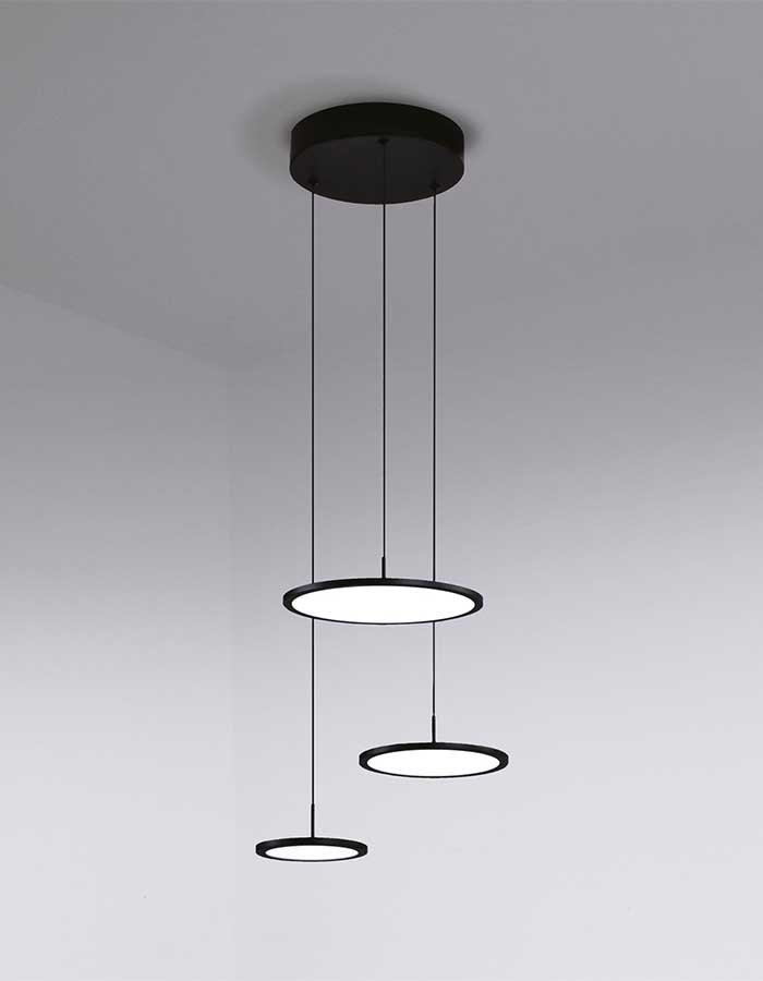 Vivida Mystery Sospensione 3 luci si distingue per il suo aspetto minimale e la grande leggerezza visiva.