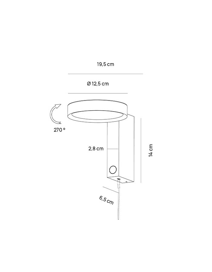 Con l’interruttore touch puoi accendere o spegnere la lampada, è possibile selezionare la tonalità di luce desiderata tra 2700K (Luce Extra Calda), 3000K (Luce Calda) o 4000K (Luce Naturale) e dimmerare con memory function ed è orientabile di 270°.